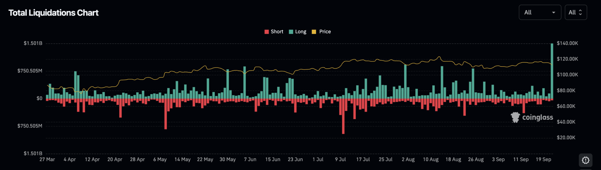 La quasi totalità delle liquidazioni è riferita a posizioni long, il cui valore liquidato ammonta a $1.5 miliardi. Si tratta della più grande liquidazione del 2025, ed essa indica chiaramente quanto sia impattante l’esposizione della leva finanziaria in questo contesto.
