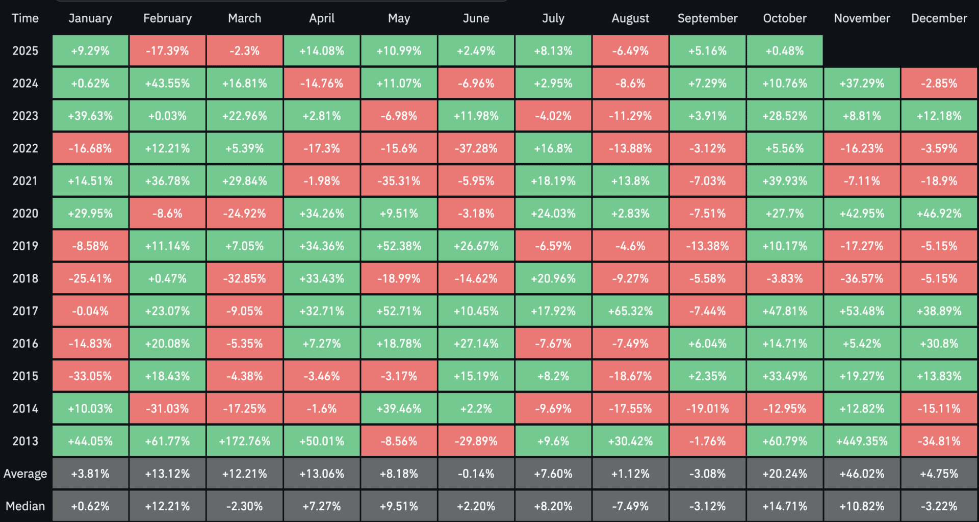 Ottobre è statisticamente il mese migliore per Bitcoin. Questa affermazione non è riferita alla mensilità con la maggior crescita percentuale, bensì alla mensilità con il maggior numero di chiusure positive. Negli ultimi 13 anni infatti, sono ben 11 i mesi di ottobre positivi, e solamente due negativi, rispettivamente ottobre 2014 e 2018.
