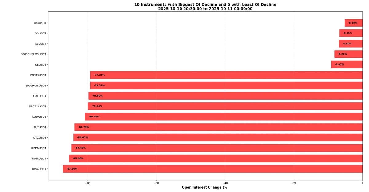 L’Open Interest è crollato mediamente del 50% e, in pratica, il mercato ha perso metà della sua dimensione in poche ore. In alcuni casi, come per il token KAVA, il crollo ha sfiorato il 90%, mentre altri, come TRX (Tron), sono scesi solo marginalmente. È l’immagine di un sistema “sovraccarico di leva” e improvvisamente costretto a smontarsi da solo.