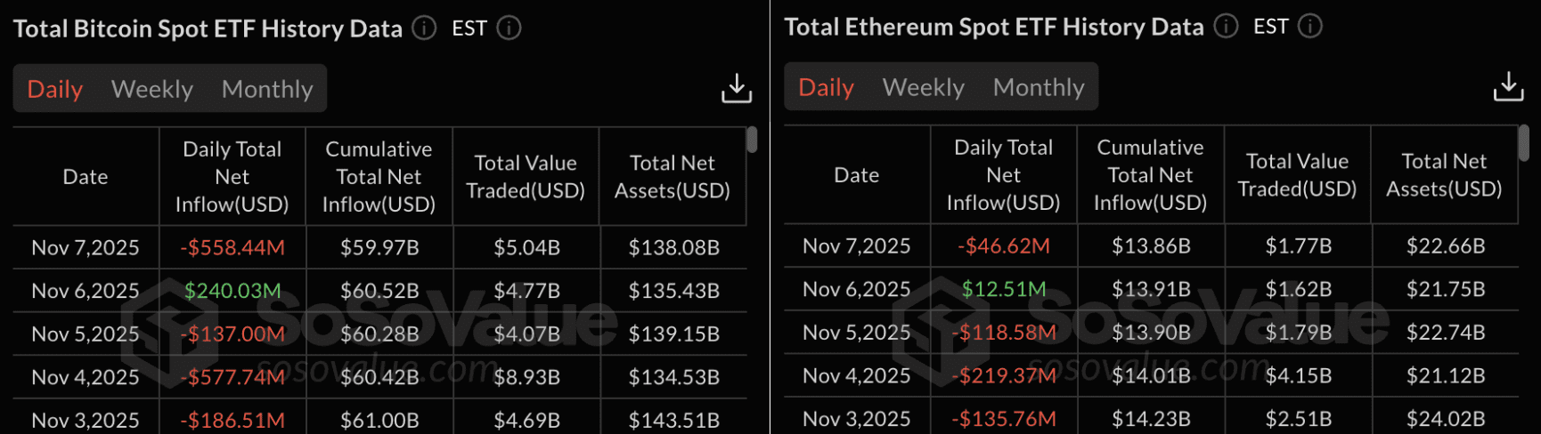 I prezzi di Bitcoin ed Ethereum resistono alle tensioni mentre gli ETF Spot perdono $1.7 miliardi in una sola settimana