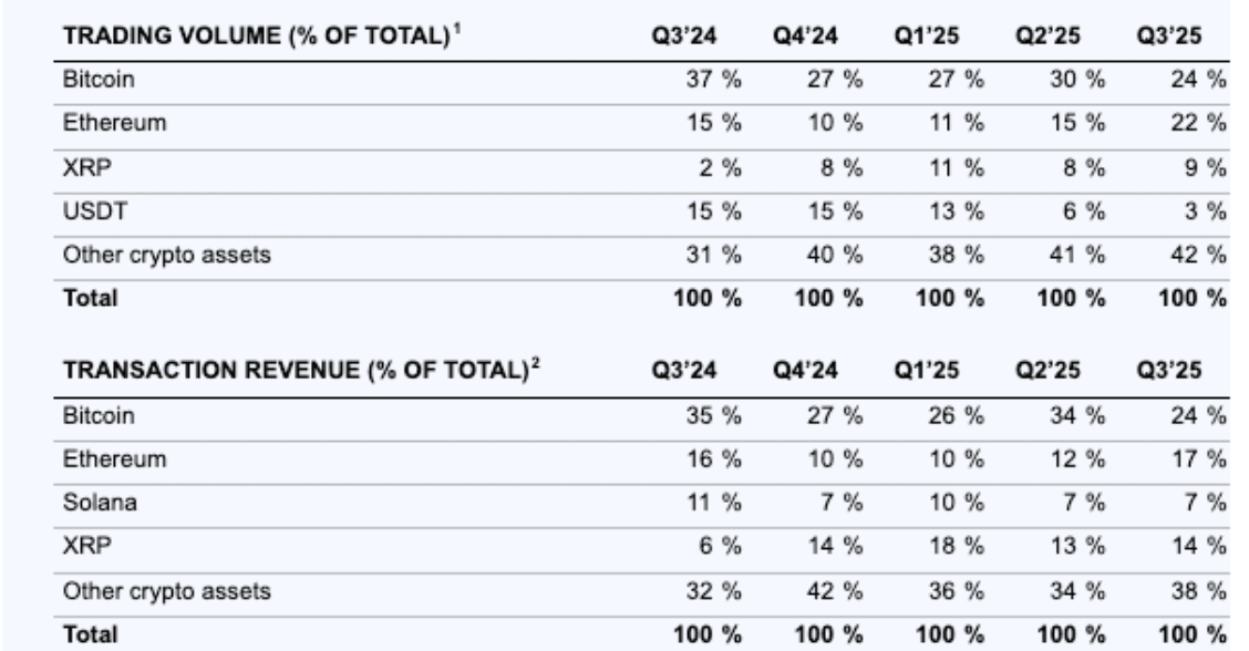 Volumi che confermano un ritorno dell’interesse nel trading spot, in particolar modo per quanto concerne il trading su Ethereum. In questo trimestre infatti, il trading su ETH ha pesato il 22% dei volumi totali, contribuendo al 17% delle revenue da trading generate da un solo asset. Un valore che non cambia la leadership di Bitcoin che ad oggi, pesa ancora il 24% dei volumi complessivi ed il 24% dei ricavi.