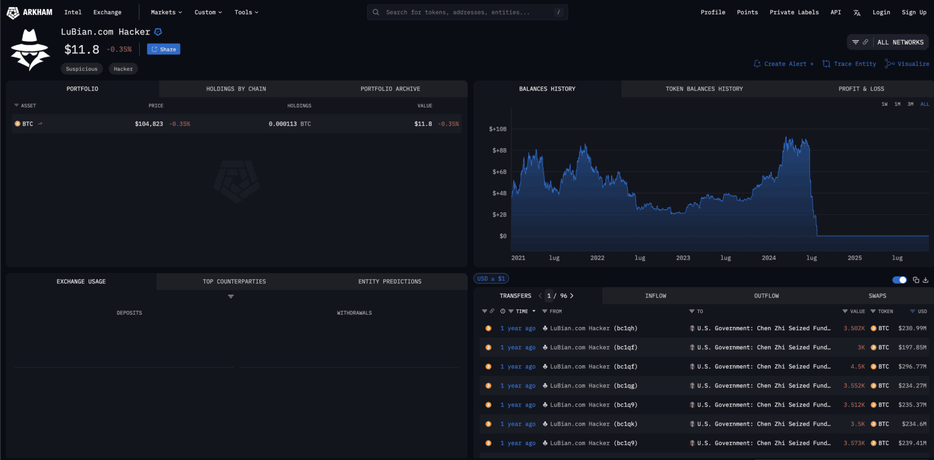 Solo pochi mesi fa, grazie ad un’analisi di Arkham, era emerso uno dei più grandi hack di bitcoin moderni, rimasto nascosto per ben 5 anni. Si trattava di un hack da 127.000 BTC nei confronti di Lubian, società cinese di mining, ai tempi tra le più importanti sull’intero mercato.
