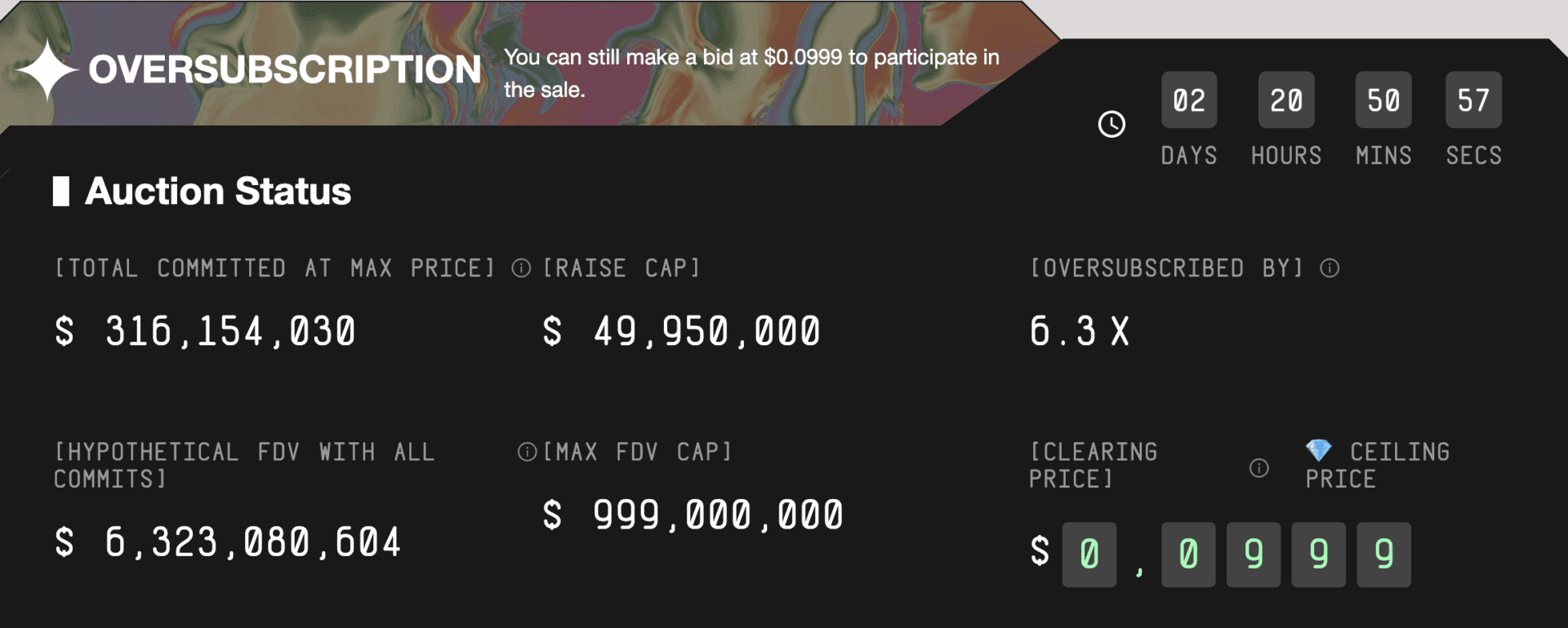 Era stato reso disponibile il 5% della supply totale, e proprio tramite la vendita di questa quota il progetto ha raggiunto una FDV di quasi un miliardo di dollari. Le richieste accumulate avrebbero spinto la FDV a oltre $6 miliardi.